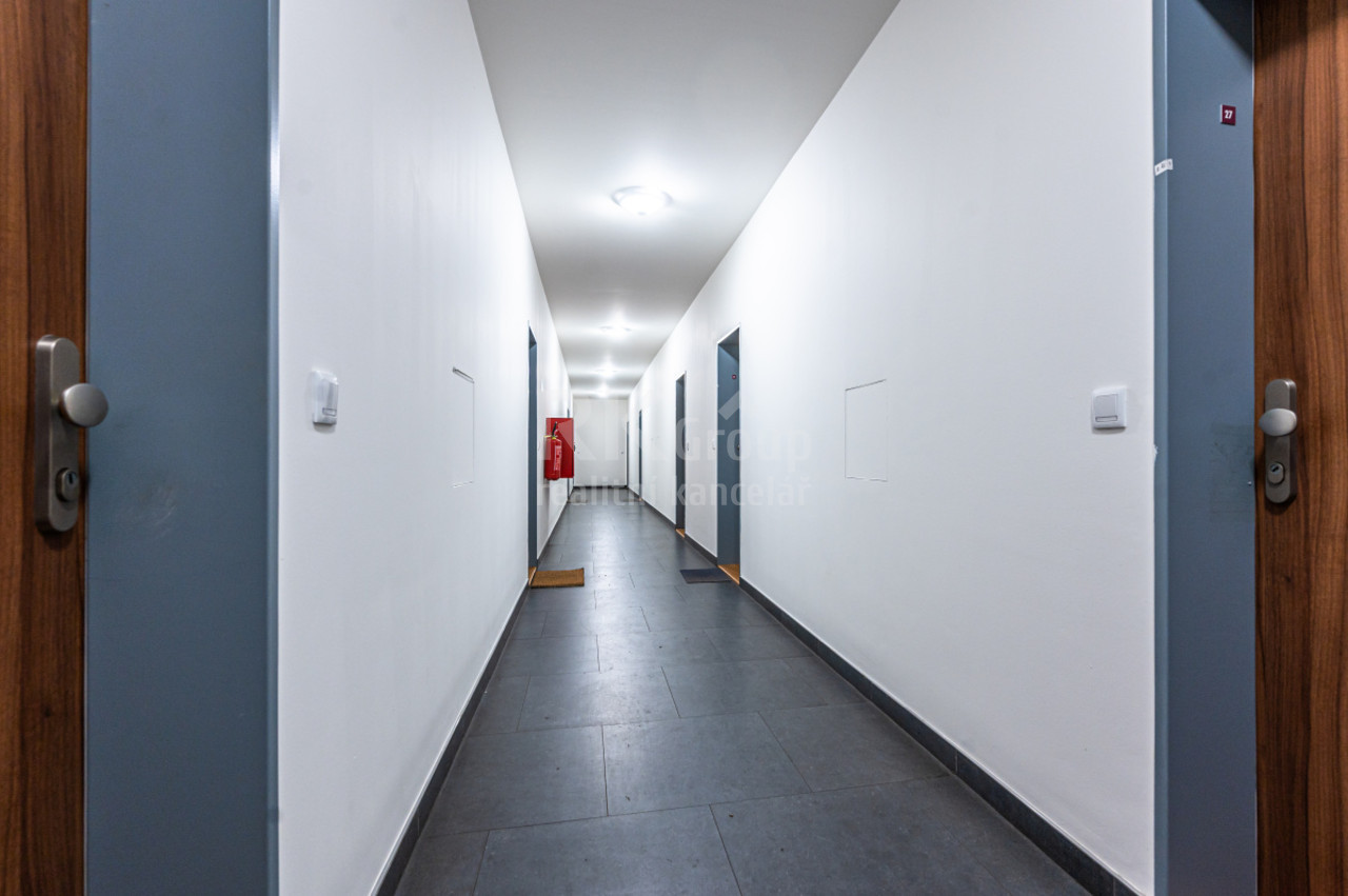 Byt se nachází v moderním bytovém domě s výtahem cca 500 m od Husova náměstí. Dispozice bytu je tvořena obývací místností s kuchyňským koutem vybaveným kuchyňskou linkou, která je osazena el. troubou, sklokeramickou varnou deskou, digestoří a dřezem. Dále je součástí chodbička, koupelna s WC a sprch...