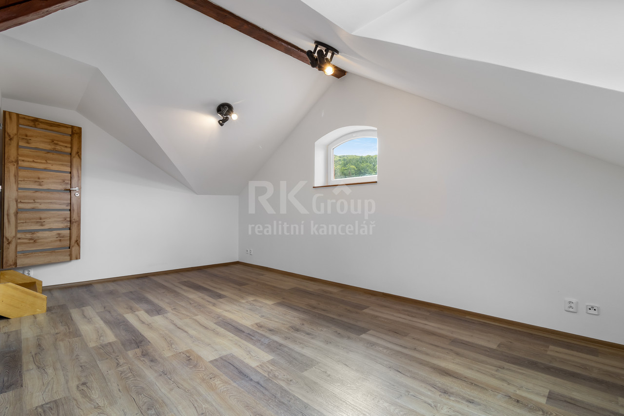 Nabízíme Vám výjimečný nově zrekonstruovaný mezonetový byt s vlastním parkovacím stáním na soukromém oploceném pozemku v městysu Komárov na kraji CHKO Brdy, pouhých 6 km od dálnice D5.