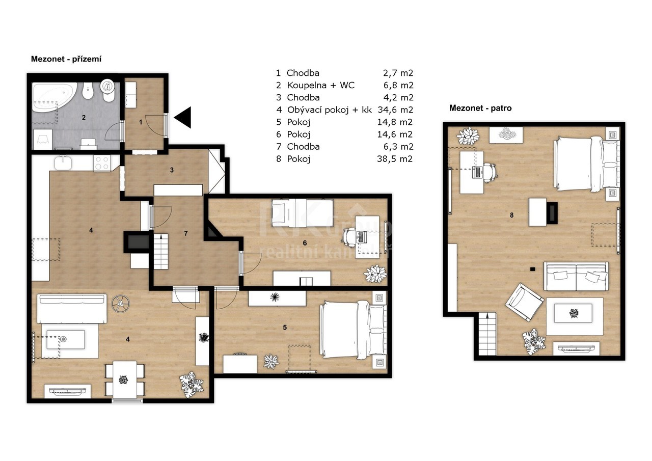 Prodej mezonetového bytu 4+kk, 118 m2, Komárov