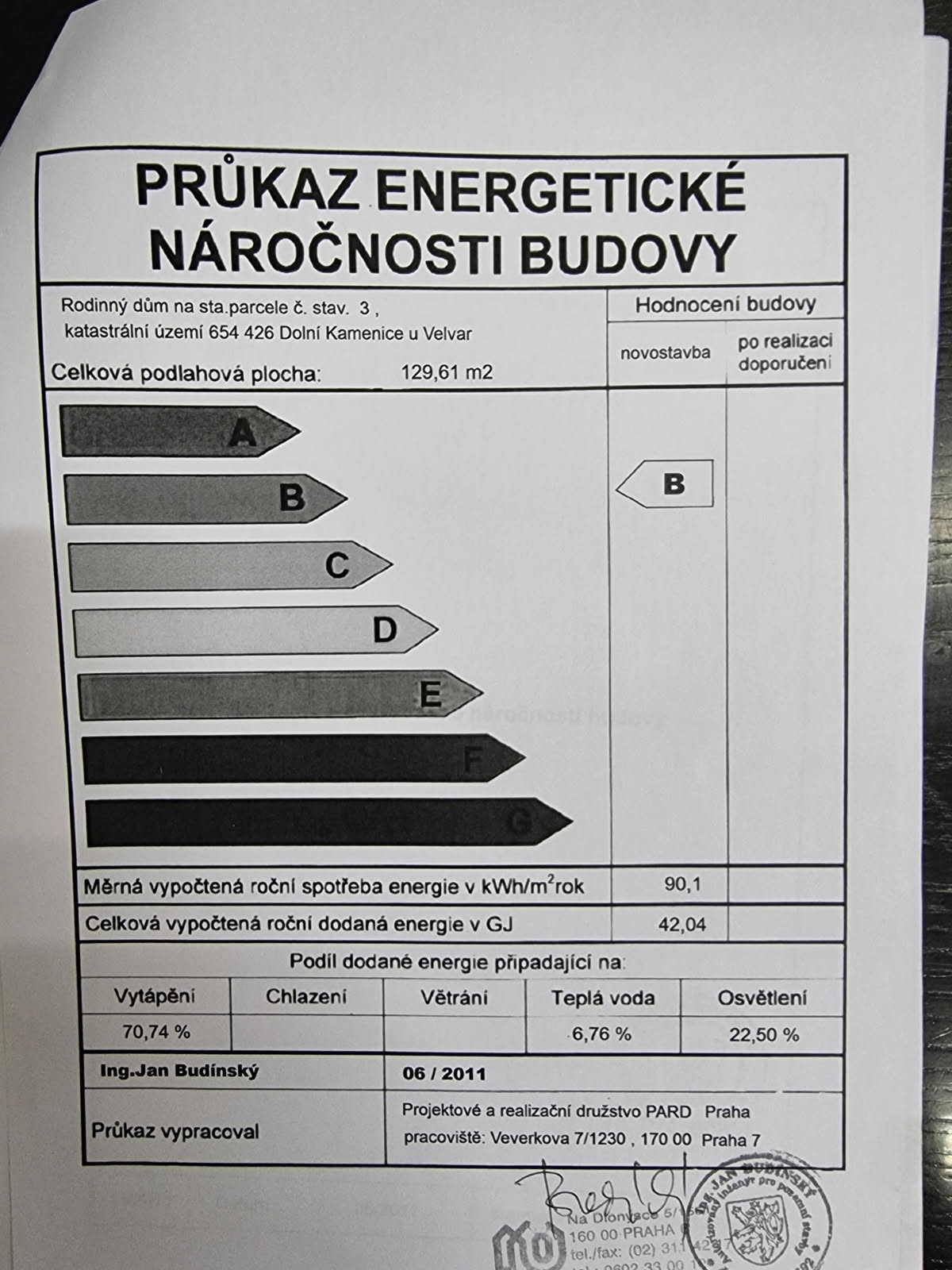 | Třída energetické náročnosti budovy: | B - Velmi úsporná |