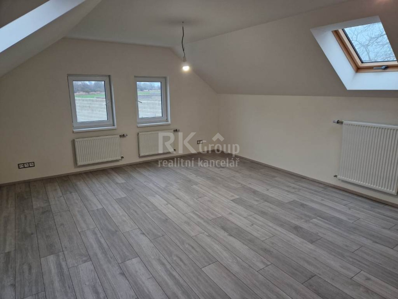 Jedná se o nepodsklepený rodinný dům s podkrovím, kolaudace 11/2025. V přízemí obývací pokoj s prostorem připraveným na instalaci kuchyňské linky, ložnice, dvě koupelny s WC (jedna s vanou, druhá se sprchou), komora a technická místnost s kotlem zn. Buderus zajišťujícím vytápění a ohřev TUV.