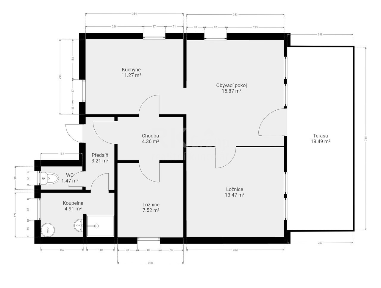 | Plocha terasa: | 18,49 m2 |