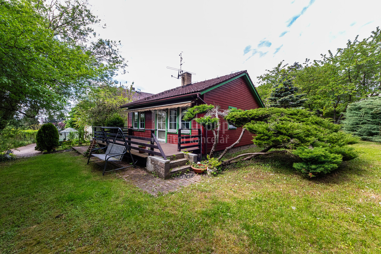 Dispozice domu zahrnuje světlý obývací pokoj, kuchyň, dvě ložnice a koupelnu. K domu náleží zahrada 790m...