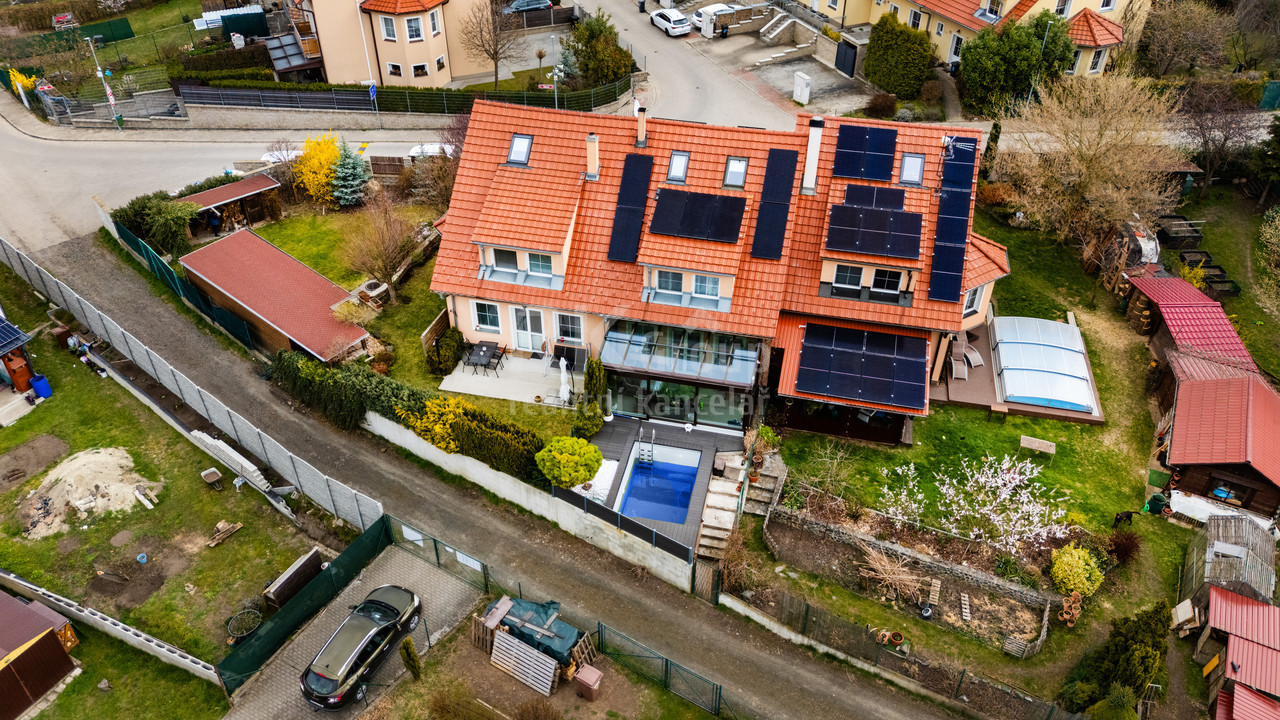 Představuji vám exkluzivní nabídku rohového řadového domu 5+kk o velkorysé ploše 155 m2, situovaného v klidné a vyhledávané lokalitě Postřižin, jen kousek od Prahy. Tento dům je v TOP stavu a čeká na nové majitele, kteří ocení kombinaci komfortu, moderního designu a praktického bydlení.