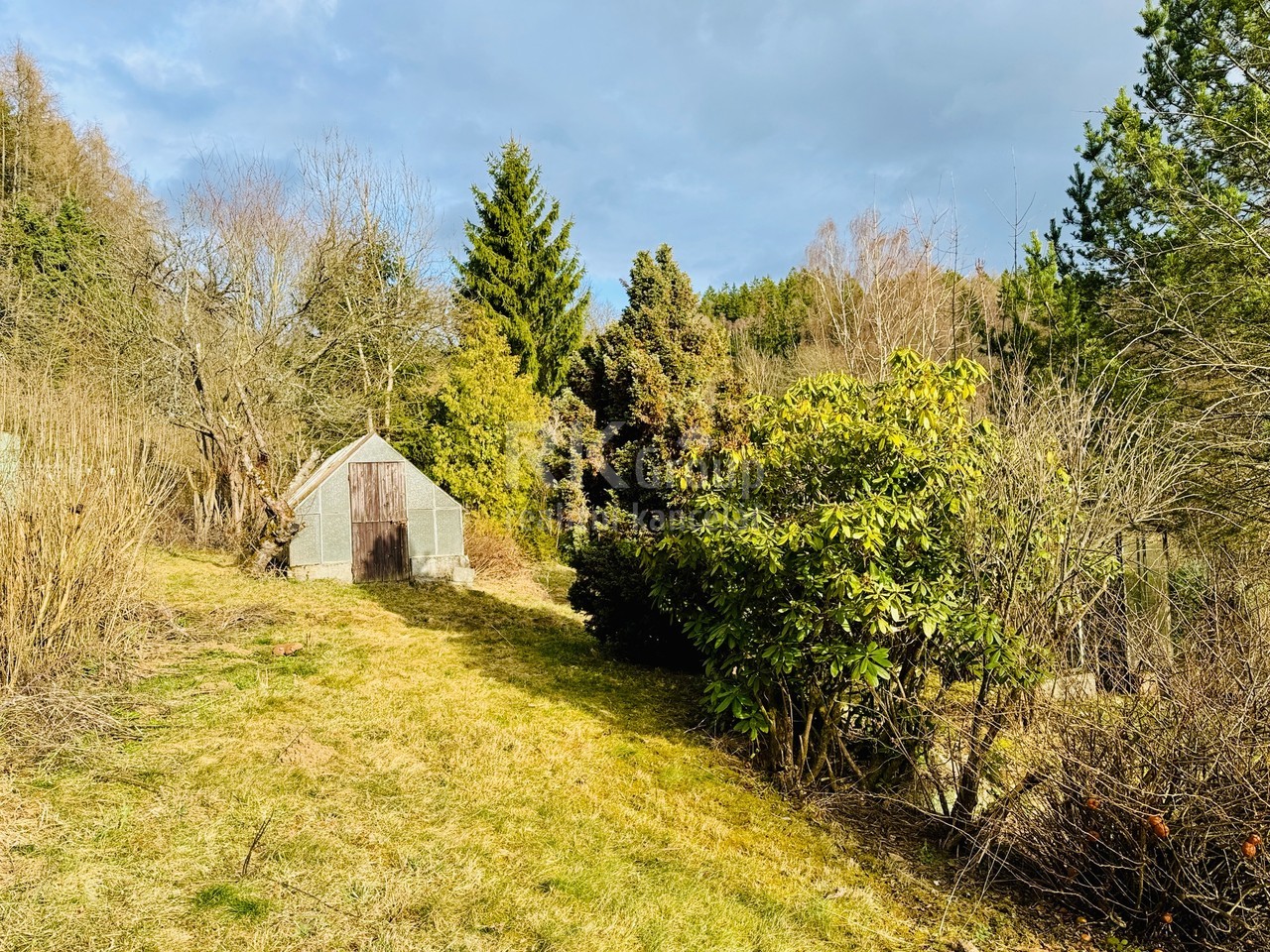 Prodej zahradní dřevěné chatky, skleníky, sklad, pozemek 560 m2, Úšovice – Mariánské Lázně