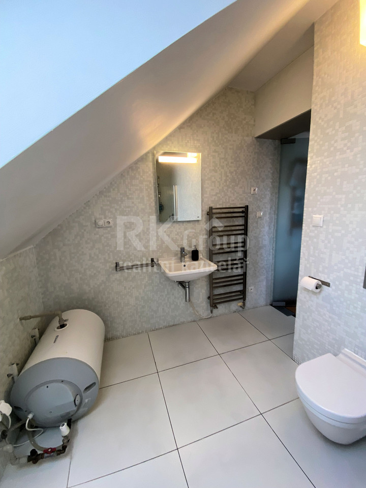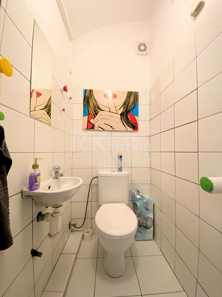 Byt se momentálně využívá jako kancelářský prostor. V prvním patře se nachází vstupní chodba, kuchyň, koupelna se sprchovým koutem, WC a dva pokoje ( 26 m2 a 17 m2. Celková rozloha 1.patra je 60 m2. Z jednoho z pokojů se vstupuje po schodech do podkroví, kde je k dispozici otevřený prostor, 50 m2 s ...