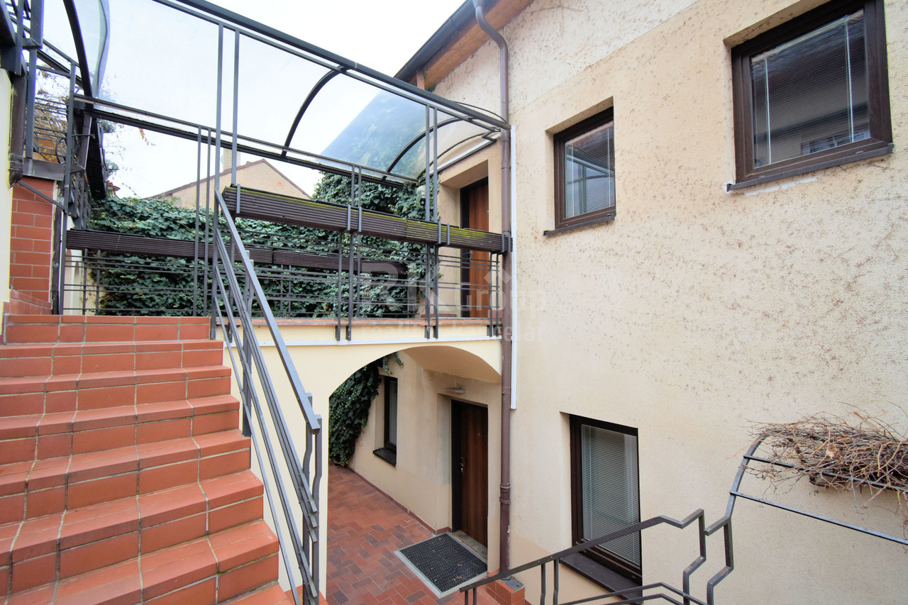 Nabízíme pronájem zajímavě dispozičně řešeného mezonetového bytu v 1.patře a podkroví domu v klidné části Prahy 4 - Michle, ul. Týmlova.