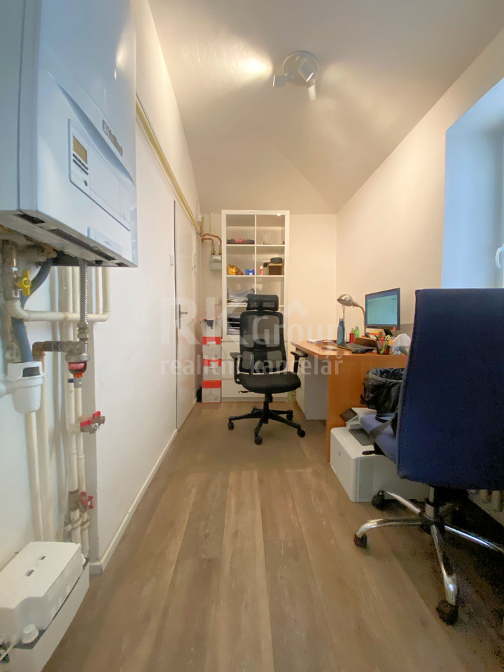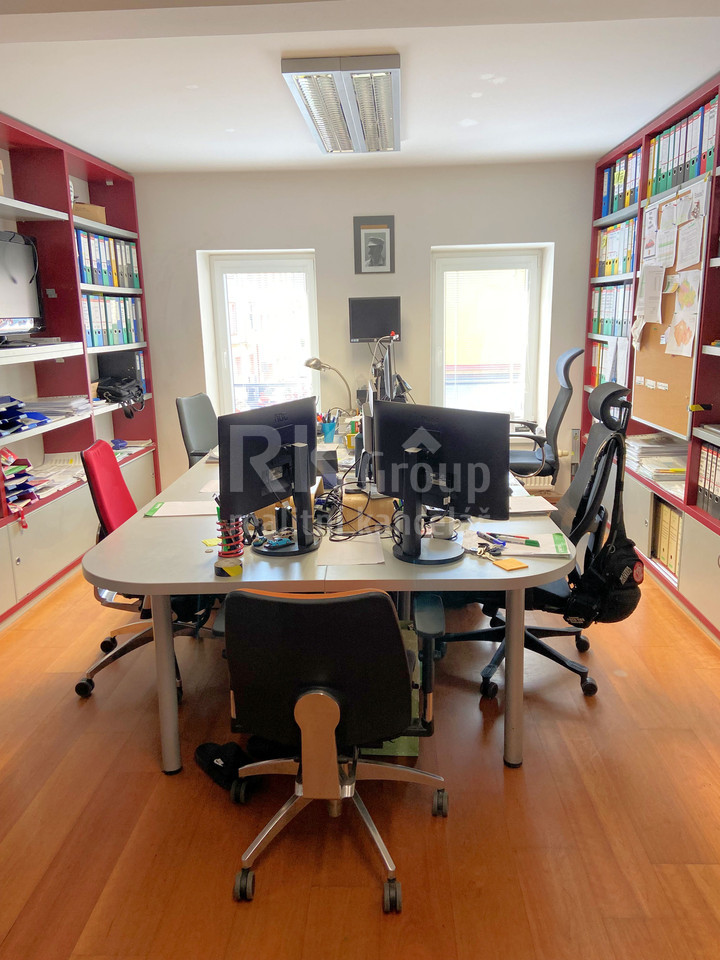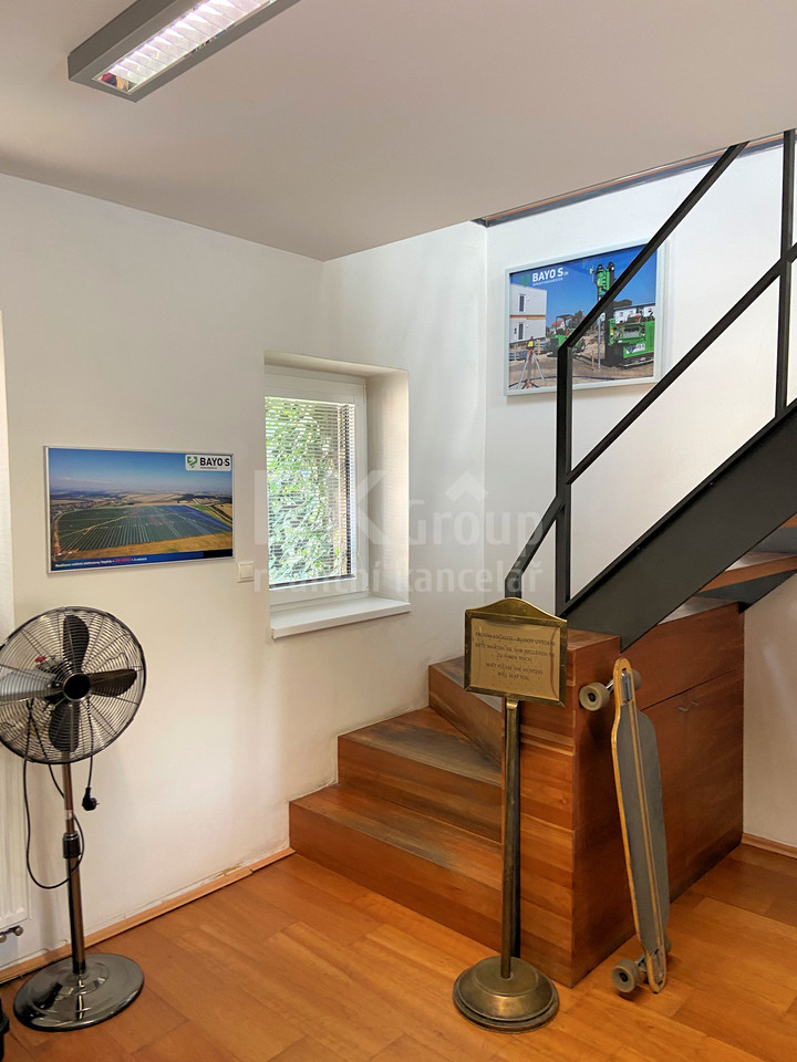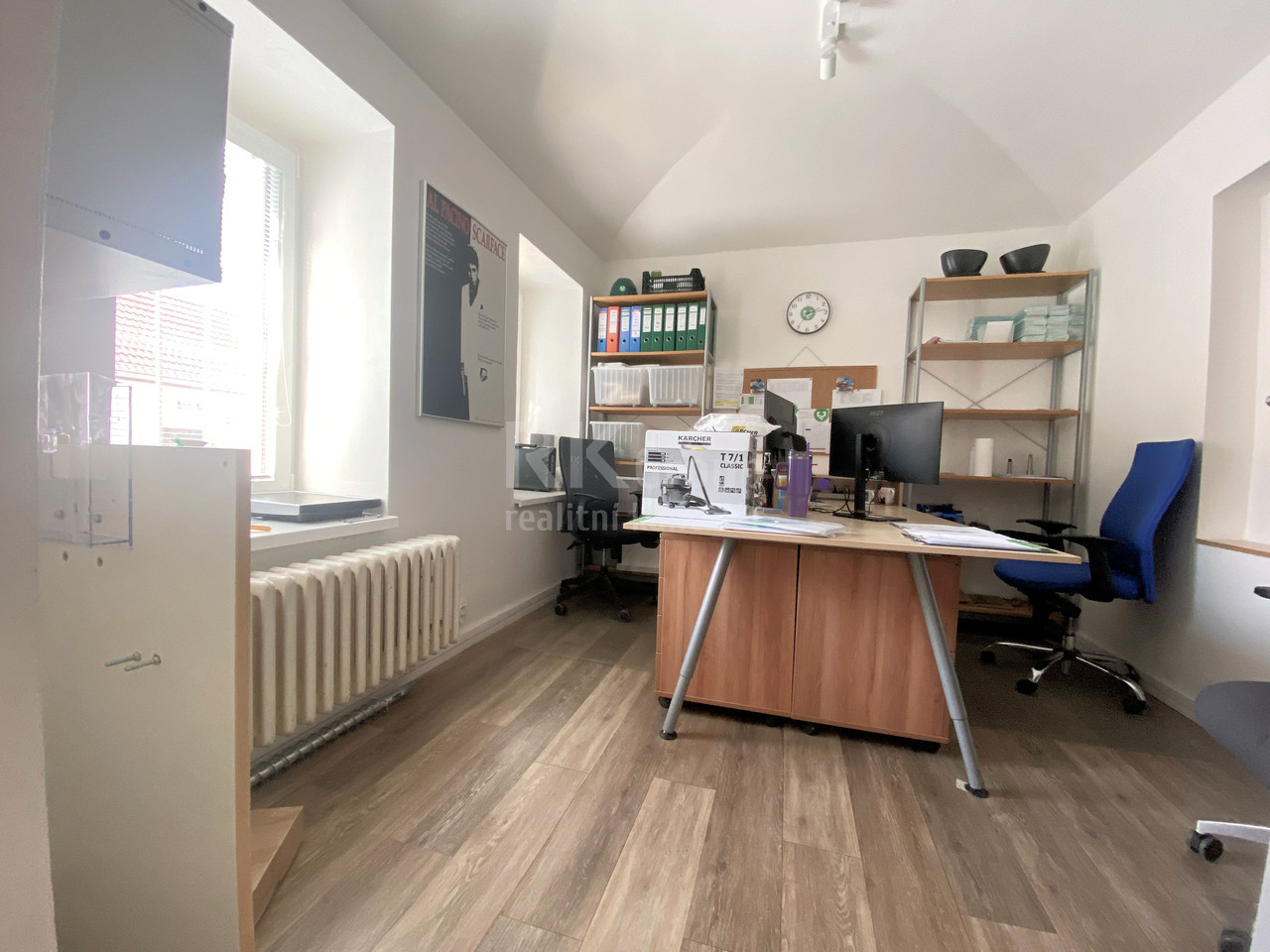 K dispozici jsou 3 kanceláře ( každá 12 m2 ), plánovaná nová kuchyň, WC, koupelna a chodba. Celková rozloha je 56 m2 se samostatným vchodem. V 1.patře se pak rovněž nabízí další 2 kanceláře ( 26 m2 a 17 m2 ), kuchyň, koupelna, WC a vstupní chodba s celkovou rozlohou 60 m2. Z jedné z kanceláří se vst...